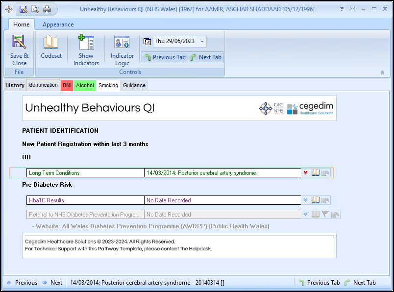 Accessing the Unhealthy Behaviours QI (NHS Wales) Clinical Template
