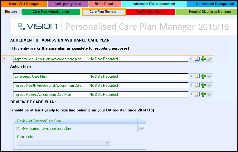 You must complete as much information as possible on the Care Plan Review tab as this constitutes the patient's full Personalised Care Plan and is an essential requirement of the DES: