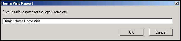 . - The Home Visit Report, Enter a unique name for the layout template screen displays. Enter an appropriate name for the report: