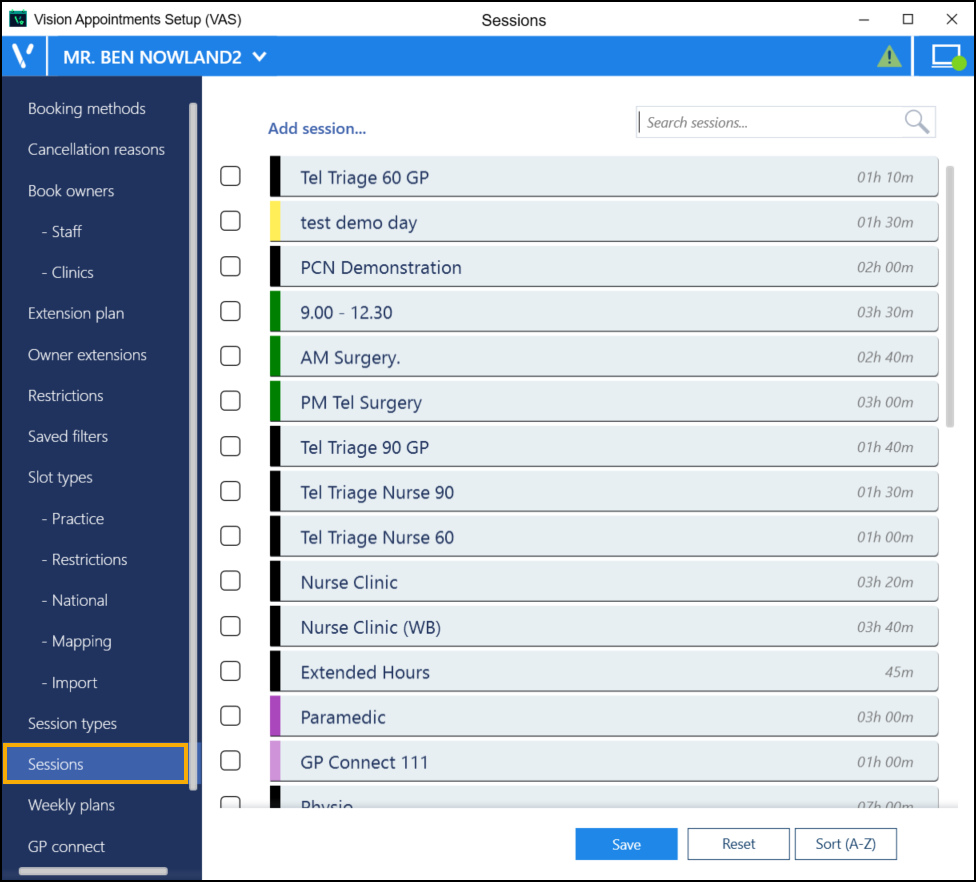 A session is a period of time that contains all of your appointment slots. You must create and allocate a session to a clinician or clinic before you can book an appointment.