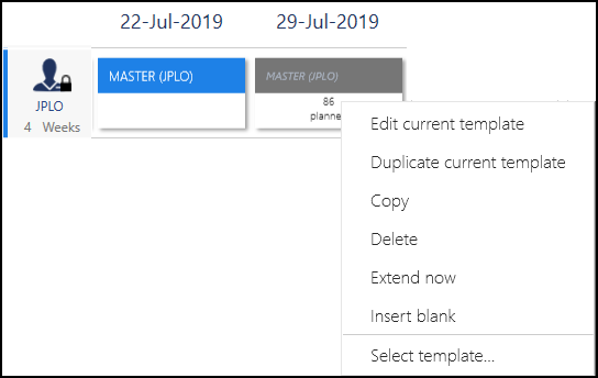 See - Extension Plan. - The active weeks are shown in blue, along with the applied weekly template.
