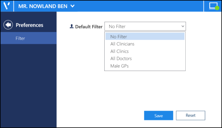 The Preferences - Filter screen displays. Select the filter you require from the available list: