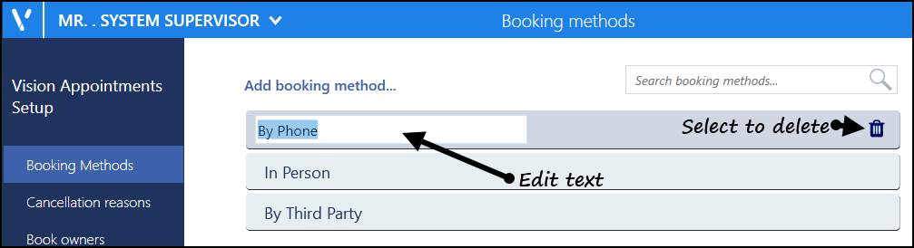 To edit or delete a Booking Method: