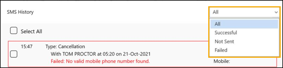 Yellow - Some messages were sent successfully, some failed, check the SMS History for details. -