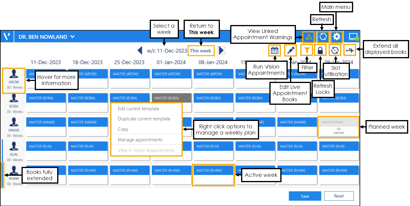 Edit Live Appointment Books - Manage existing plans as and when required without updating the weekly plan template.