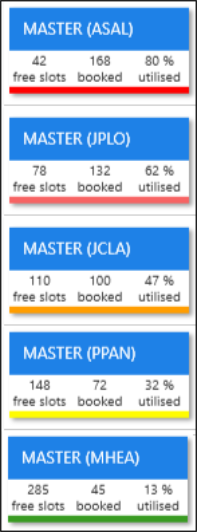 The utilisation is colour coded depending on the percentage: |