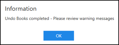 A message displays confirming undo books completed: