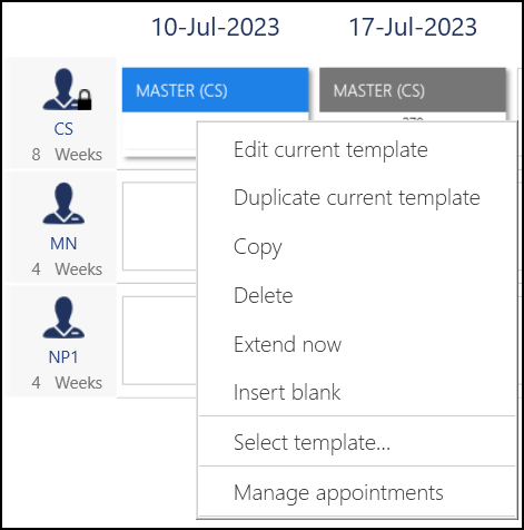 Insert Blank - Inserts a blank template without any appointment sessions.
