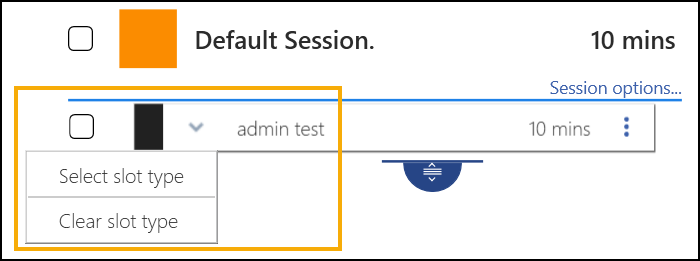 Select Clear slot type to insert an empty non-bookable slot, these can be used as 'catch up' slots: - If you are creating a session built mainly of the same slot, click, hold and drag the drag handle