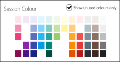- Colour - Select the black square to choose a colour for the session header, the Session Colour screen displays.