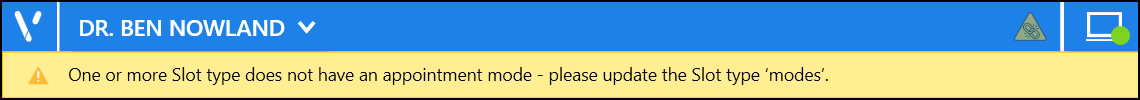Map later - Allows you to defer on that occasion and continue using Appointments Setup without mapping. The following message displays 'One or more Slot type does not have an appointment mode - please update the Slot type 'modes'.':