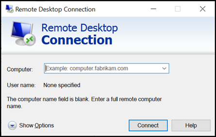 - Computer - Enter the details of the AEROS site you wish to connect to, for example, if your Vision 3 user number is 12345, you would enter 12345.inps.gpsoc.nhs.uk