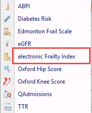 on the floating toolbar and select Calculators - Other - electronic Frailty Index.