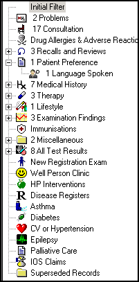 • Save selection as Initial Filter - Select to set up a personal initial view for when a patient is selected. Holding the Ctrl key, select from the navigation pane the items you wish to display on your initial view, now right click on Initial View and select Save selection as Initial Filter.