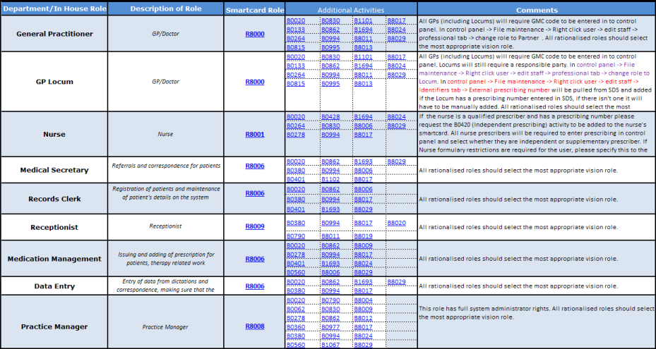 Important - We strongly recommend that the Rationalised roles are used where possible, especially for use with EPS2.