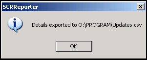 - A progress bar displays and then you are prompted 'Details exported to (the selected location)'. Select OK: