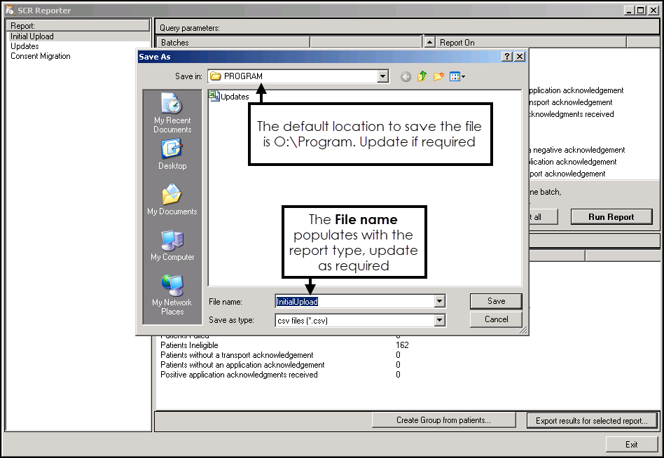 To save the output of a Summary Care Record (SCR) report as a .csv file that can be used in Microsoft Excel: