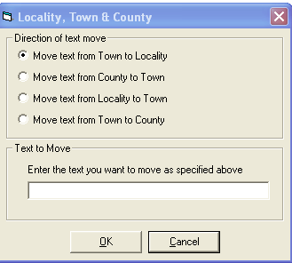 - In Text to Move, first type in the text of the address line of either a line in Locality, Town, or County, that you want to move.