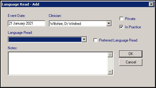 - Preferred Language Read - Tick if this is the patient's preferred written language.