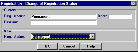 - Click on the Change Status button. If the button is disabled, then this may be because you are a Registration Links practices and are not permitted to change the status of a permanent patient. The top part of the Change of Registration Status screen shows the patient's current registration status.