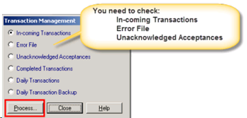 You must check the incoming and outgoing registration messages on a regular basis. This is done in the Transaction Management screen in Registration Links.