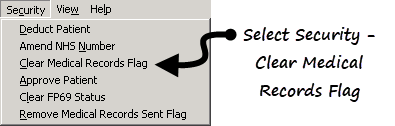 , select Security - Clear Medical Records Flag.