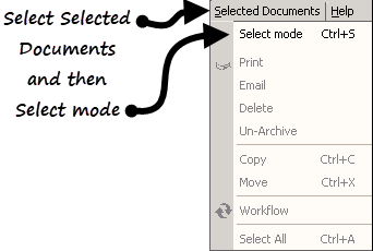 - A box is now displayed in front of all the documents you can select, you can select them individually or select Selected Documents - Select All.