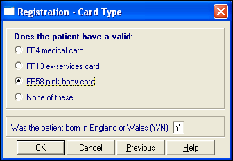 To register a baby, select FP58 pink baby card and then in Was the patient born in England or Wales? enter either: