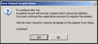 - Select Yes to confirm you are sure you want to create this record, or No to cancel.