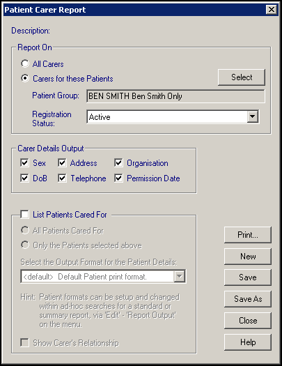 The Carer Report is designed to address this issue, by allowing you to search on a group of patients as follows:
