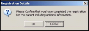 Select OK to exit the patient or Cancel to be returned to the Registration - Details screen.