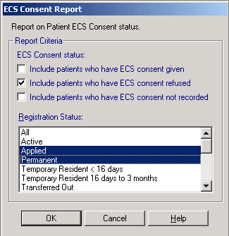 The ECS Consent Status Report enables you to view and print a list of patients by selected consent status.