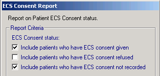 - Include patients who have ECS consent given - Tick this option to include patients who have expressly given consent for ECS. As consent is automatically implied for ECS, this option only returns patients who have previously dissented with: