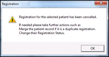 , select the patient record concerned. - Select Action - Cancel Registration: