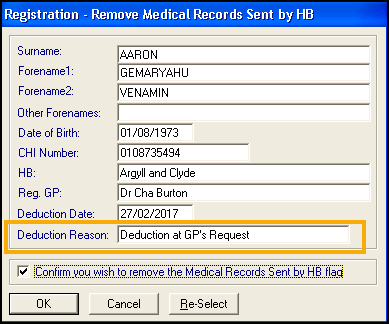 This process should be followed once a patient is deducted and the Medical Records have been returned to and received by the health board.