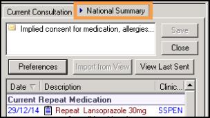 - The National Summary displays on the right of your screen, with the current consultation tab.