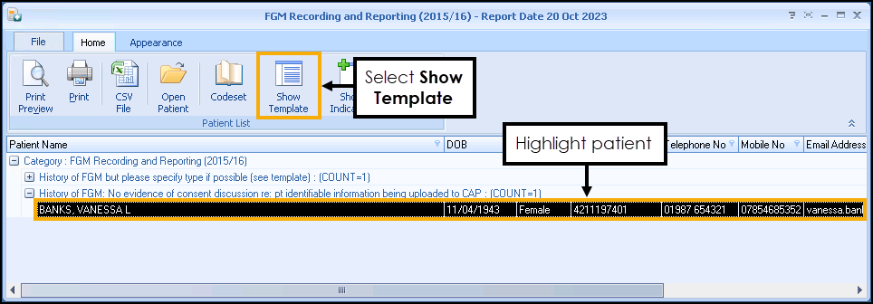 For information on recording data on the FGM Recording and Reporting (2015/16) Clinical Template, see Recording data on the FGM Recording and Reporting (2015/16) Template.