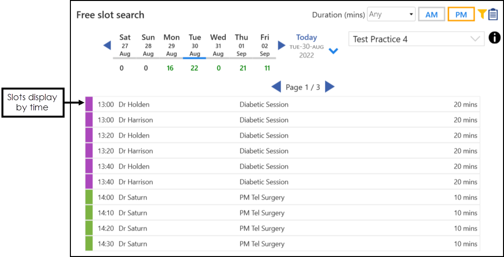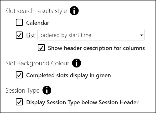 - Completed slots display in green - Tick to display completed slots in green:
