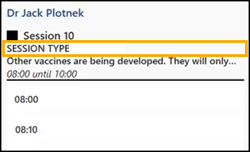 Display Session Type below Session Header - Tick to display the Session Type below the Session Header in the Reception View or Weekly View: