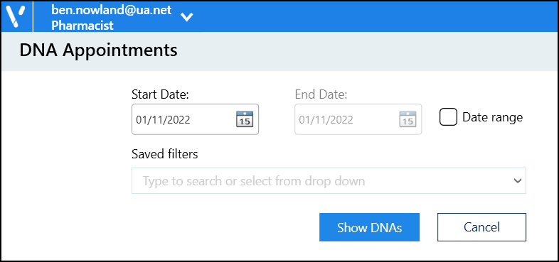 Note - Patient records that you cannot update with a DNA clinical code display on the Records that cannot be DNA coded tab. See Appointments that Cannot be DNA Coded for more information.Complete as required: