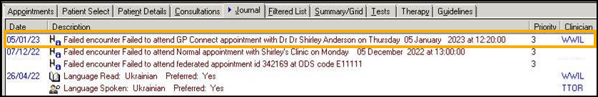Appointments that you cannot update with a DNA clinical code display on the Records that cannot be DNA coded tab: