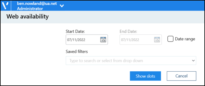 Note - You must only select either Web available or Web unavailable slots at one time. The bulk update options are unavailable when selecting a mixture of slots. -
