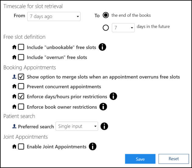 • Prevent concurrent appointments - Tick to prevent appointments being booked for the same patient, at the same time with more than one clinician.