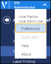 You can set practice/system wide and user settings from the General screen: