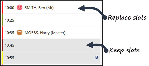 - Keep Slots - leaves the overrun slots in the view, the slots are greyed out to indicate they are not available.