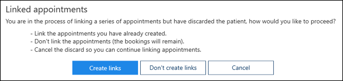 It is sometimes useful to link multiple appointments so your clinicians and administrative staff can see that any specific appointment is part of a group. Within Appointments you can link appointments, for example, a recurring appointment for ongoing dressing changes or blood pressure monitoring.