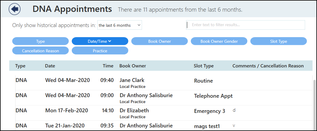 • Practice Wide Filters - You can now select Options - Refresh setup data to update any changes made to practice wide filters in Appointments or Appointments Setup. A practice wide filter can be updated by another user without impacting your work, the changes only update when you select Refresh setup data, or the next time you log into Appointments.