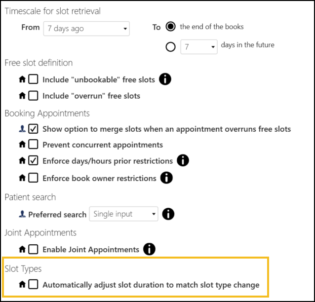 Preferences - General - Automatically adjust slot duration to match slot type change - There is now a practice wide setting to automatically update a slot duration, when a slot type is changed to one with a different duration.