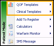 - Alternatively, you can select QOF/QAIF Templates or Clinical Templates from the Vision+ menu on the floating toolbar