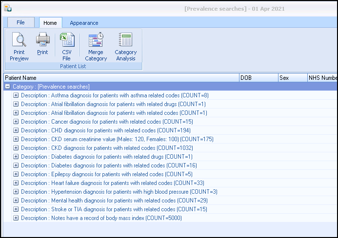 Prevalence Searches look for patients who may have been overlooked and should be on a QOF/QAIF disease register. Some examples include patients with a history of a seizure but not on the epilepsy register, or patients with a history of asthma with no diagnosis.